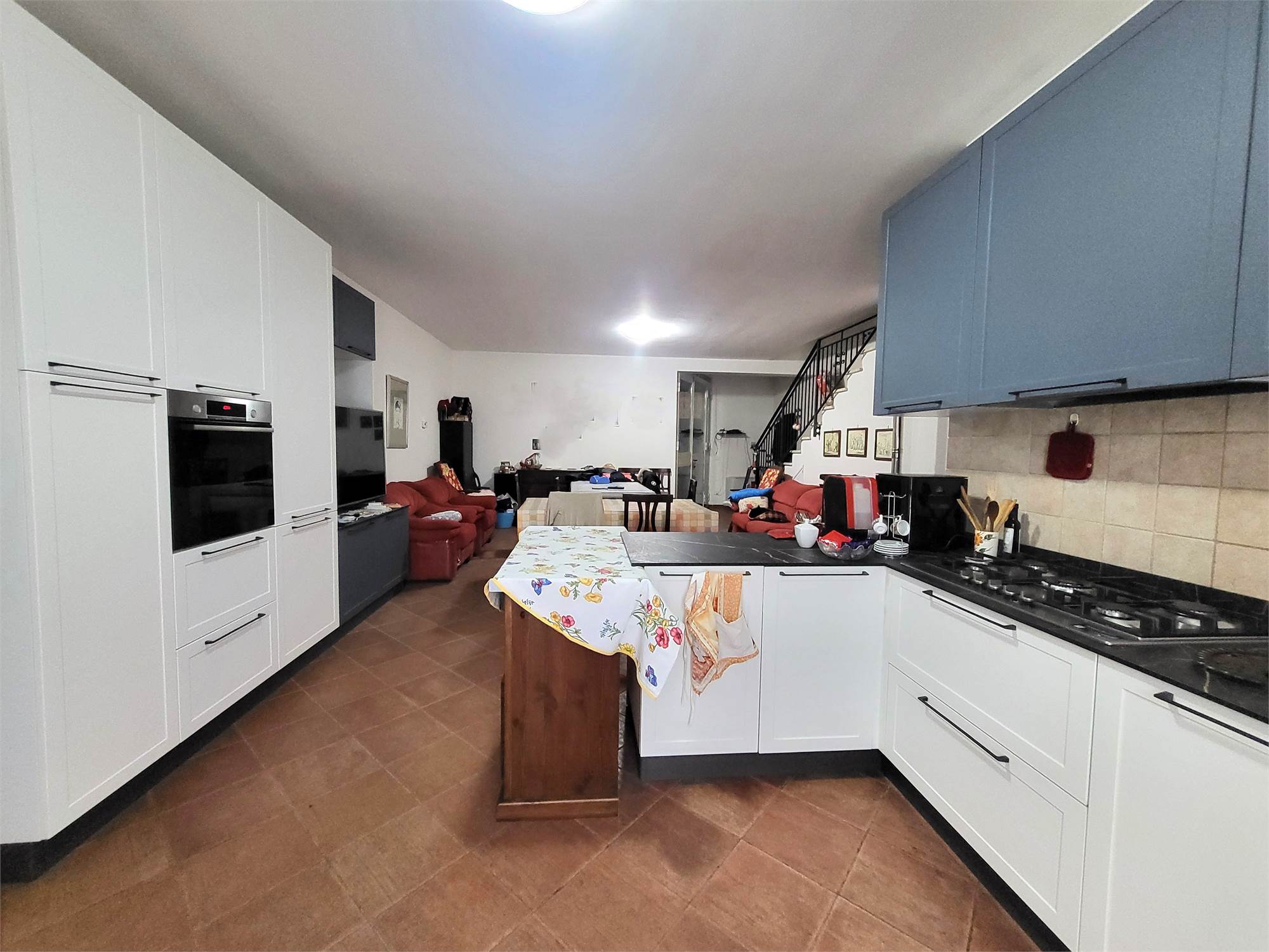 Al piano terra, troviamo una spaziosa zona giorno che si apre su una cucina abitabile, perfetta per cene in famiglia. Un bagno al piano terra completa il livello. Al piano superiore, due camere da letto accoglienti, di cui una con cabina armadio, offrono comfort e privacy. Qui si trovano anche un bagno e due balconi che regalano una vista incantevole.